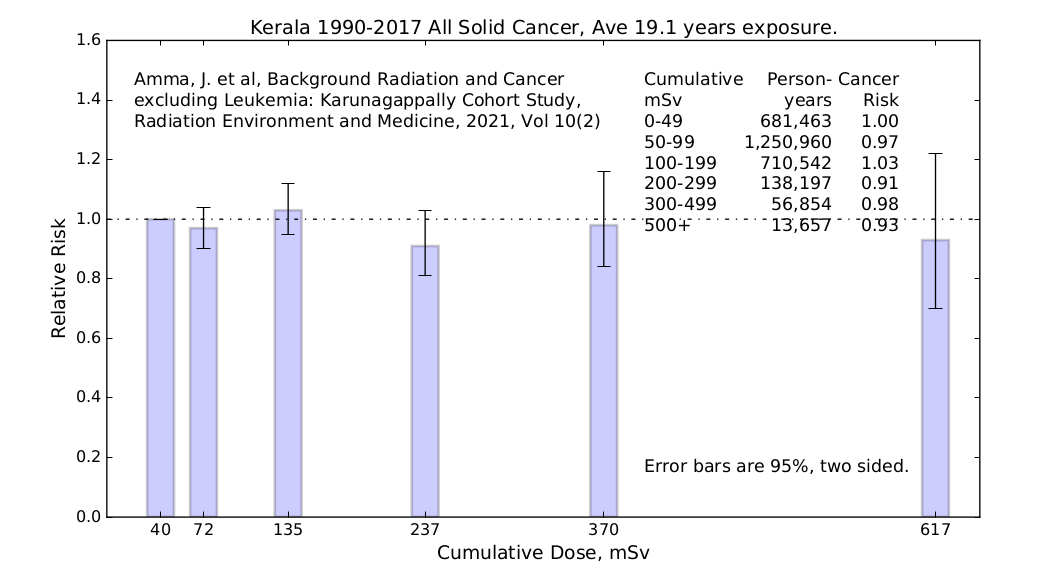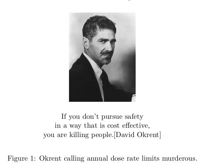 The radium dial painters are mentioned only to make the point that radiation can be harmful and then silence. The dial painters are the definitive example of how badly LNT handles spread out dose rate profiles. The Taipei apartment exposure, the second most compelling example, is not mentioned. The Karunagappally study is dismissed with: