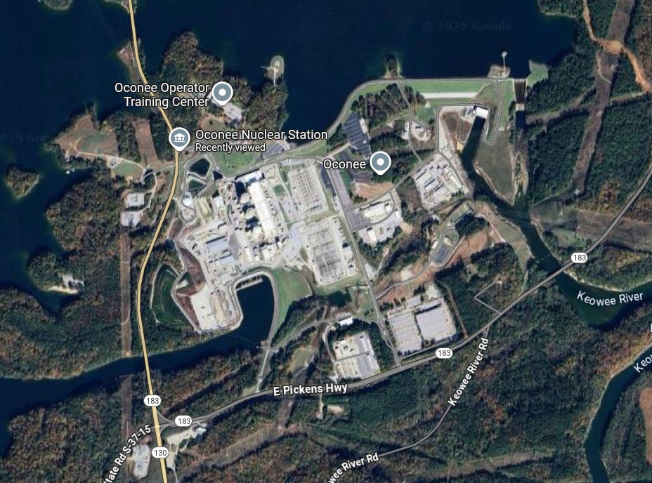 Figure 2. Satellite View of Oconee. 2.7 GW on less than 2 km2 of land.