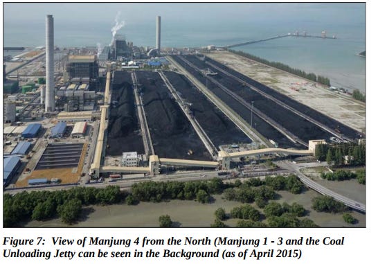 Figure 2. Manjung 4 coal plant looking seaward. The plant itself is on the left behind the stack.