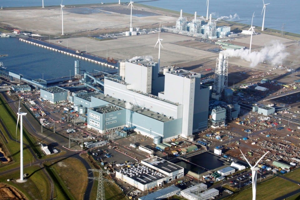 Figure 3. Eemshaven: 2 by 800 MW USC coal plant, 46.2% efficiency. Turbine hall (blue) much smaller than boilers (white).