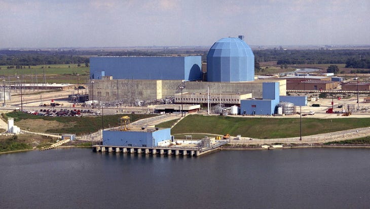 Figure 1. The 2.5 gigawatt Oconee plant in South Carolina. These three reactors were built for just over 350 million dollars between 1967 and 1974. That’s $1141 per kilowatt in 2024 dollars. They took about 6 years to build. Oconee can produce reliable, on-demand, zero pollution, very low CO2 electricity at less than 3 cents/kWh in today’s money. Oconee’s average capacity factor over the last 5 years was 98.2%. All three of these reactors have been licensed into the 2050’s, a gift from the Greatest Generation. Oconee and its cooling pond Lake Keowee have turned a depressed part of western South Carolina into a second home and tourist magnet.